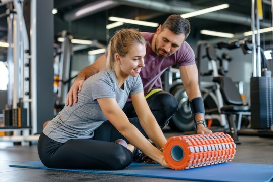 Athlete Recovery Techniques with Foam Roller and Stretching Exercises in Well-Equipped Gym