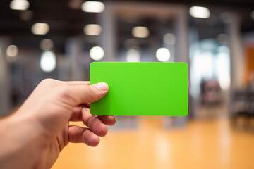 hand holding credit card mockup on blurred cafe background.concept of lending and banking services.