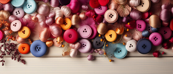 Buttons And Threads Of Various Colors Lie On The Table.  Generative AI