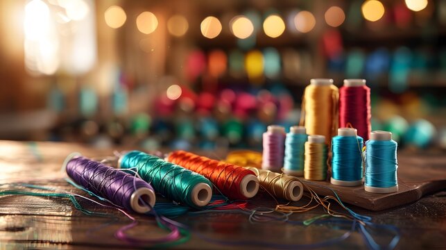 Sewing Kit with Vibrant Threads Resembling Theater Curtain Colors for Elaborate Costume Design