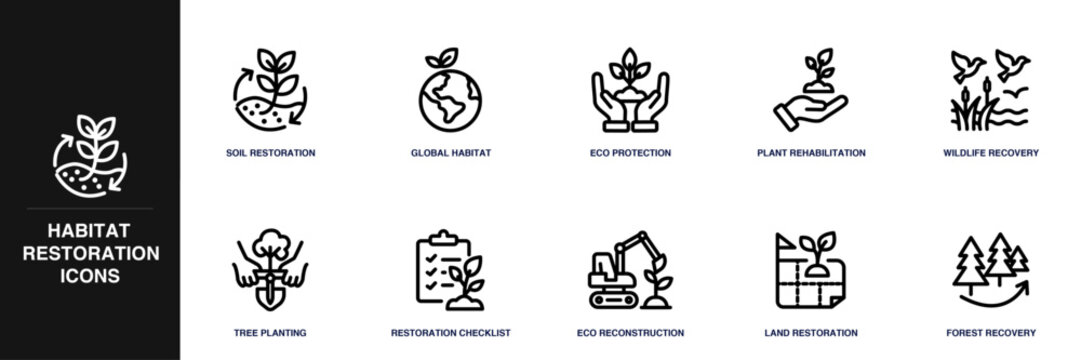 Habitat Restoration Line Icon Set