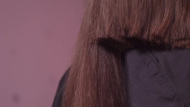 Brown hair isolated on white background. Long wavy ponytail