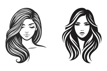 A monochrome vector illustration of a woman's face with flowing hair and closed eyes, showcasing elegance and femininity.