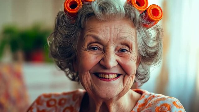 Beautiful Woman With Hair Curlers, Hair Rollers On Healthy Curly