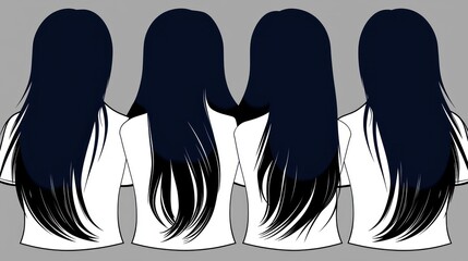 Eight examples of long, wavy, brightly colored hair extensions showcase fashion versatility for beauty product promotion or styling guide designs.