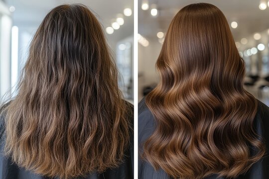 Hair transformation shows amazing before and after hair treatment for smooth, healthy