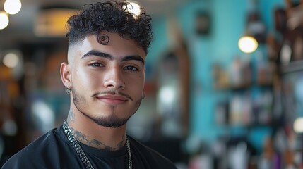 young latin american barber succeeding in personal grooming business as selfmade entrepreneur with trendy barbershop offering professional haircut and styling