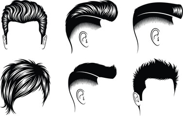 Male Hairstyle and Beard Silhouette Set Featuring Diverse Haircuts, Facial Hair, Accessories, and Profiles for Fashion, Grooming, and Design