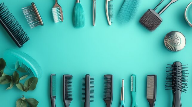 A vibrant equipment for hairdress salon advertisement featuring a clean, modern space with stylish hairdressing tools, showcasing professional beauty services