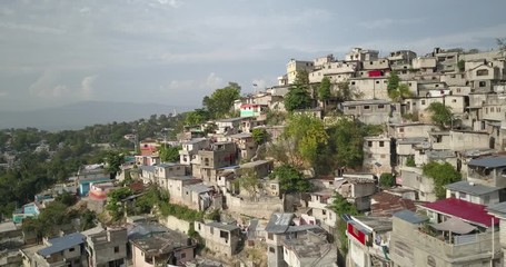 Aerial drone view of small colored houses in Port Au Prince, Haiti