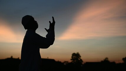 Silhouette Asian islam man prayer,Young Muslim praying,Ramadan festival concept