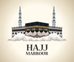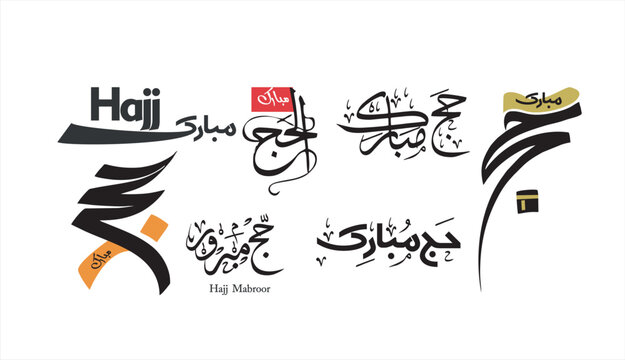 Print, hajj mubarak arabic calligraphy set, Hajj Mabrour Greeting Islamic Illustration Background Vector Design With Arabic Calligraphy, Kaaba, Lanterns For Banner, Wallpaper, Cover, Flyer. Translatio