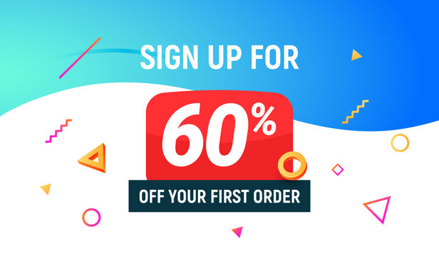 Coupon code discount sign up advertising offer. Discount promotion tag flyer 10 percent off promo sale