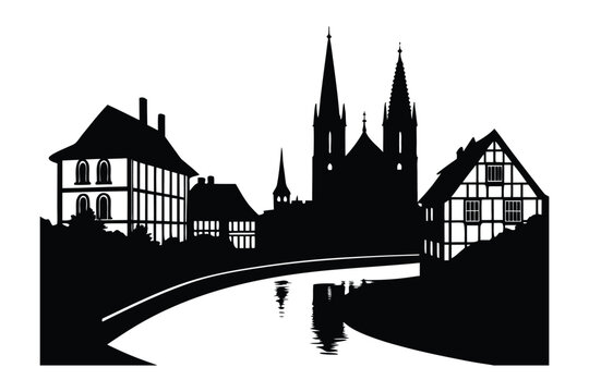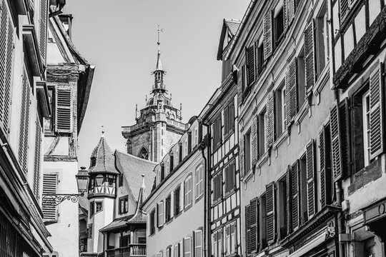 Colmar, Alsace, France: Half timbered houses in the old town of Colmar in black and white