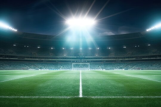 Stadium Spotlight: Black Podium on Green Soccer Grass
