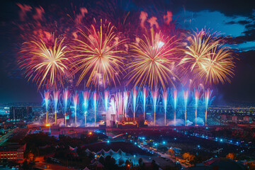 Spectacular fireworks show brightens the night sky during the Super Bowl halftime, enchanting fans with vibrant colors and sparkling lights to celebrate the event