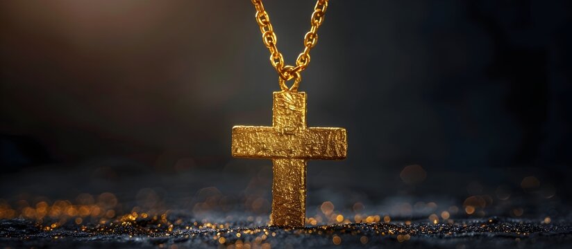 Line of gravestones with crucified Jesus on top,cemetery at night,Prague,Czechia.