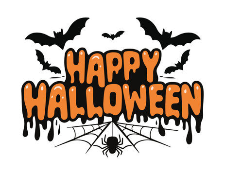 Jack o' lantern with bold 'happy halloween' text