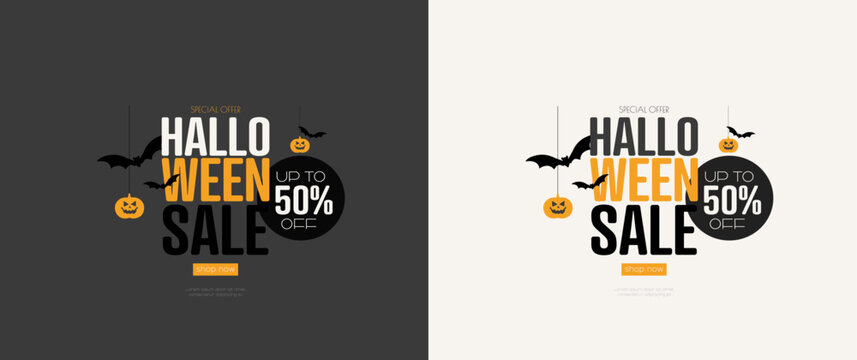 Social media post template for halloween sale. Sales banner for halloween celebration.