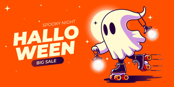 Halloween Sale concept. Halloween promotion poster. Halloween Sale banner template with ghost. Halloween ghost banner poster design. Halloween spooky night. Halloween background with ghost. Vector