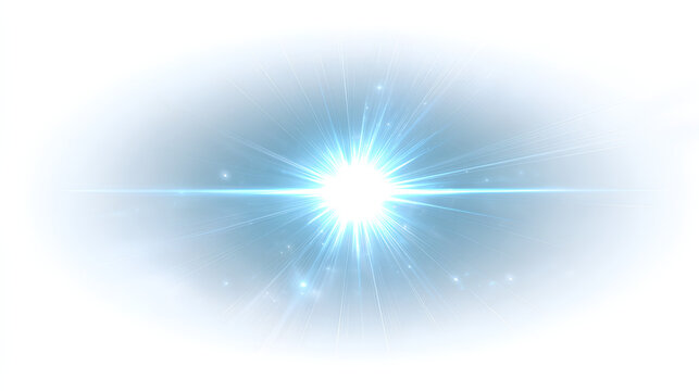 Star light blue sun flare glowing sunlight with halo and warm radiance on a white background, natural brightness effect