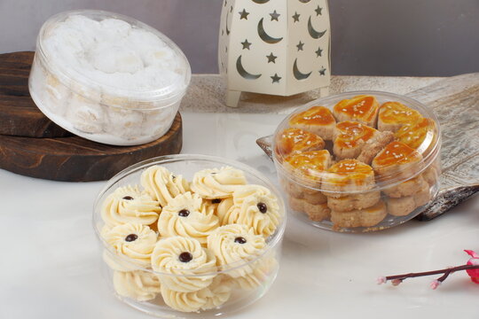 Kue Lebaran is a variety of Indonesian cookies for Eid, including snow white and thumbprint types