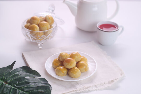 Kue nastar or pineapple tart. indonesian eid snack (kue lebaran), Nastar cookies are round in shape, with a shiny yellow top. Inside it is filled with pineapple jam.