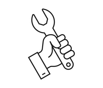 Close-up of a hand holding a wrench against a clean background. Simple colors and design. Industrial concept to convey precision mechanics and repair work. Ideal for stock photos. Generative AI