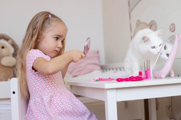 A kitten gazes into a mirror and sees a lion, symbolizing self-perception, inner strength, potential, and motivational belief in one's future greatness