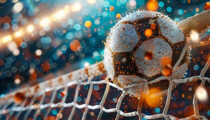 Dynamic moment in handball  ball strikes net in goal celebration at summer olympics