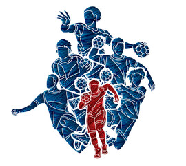 Handball Sport Male Players Team Men Mix Action Cartoon Graphic Vector