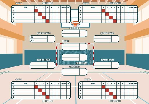 standings of the handball championship .handball field with markings.tournament table for 16 teams.for the world Cup,club handball championship.vector image