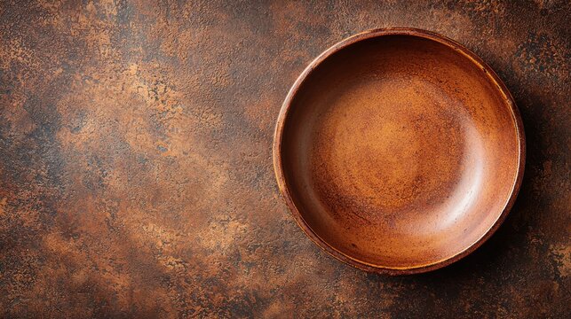 Glazed clay background rustic terracotta ceramic bowl warm copper bronze tones handcrafted pottery surface natural texture overhead view artisan backdrop design