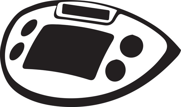 Illustration of a digital device with buttons and a screen, representing a handheld gaming console or portable electronic gadget