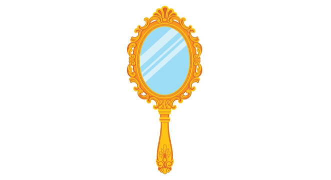 Classic black and gold handheld mirror on white backdrop with empty space for text