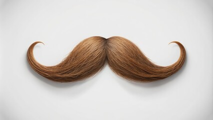 Brown handlebar hipster mustache facial hair on a white studio isolated background. Facial hair, style, and grooming in barbershop in a minimalist design. Copy paste empty place for text