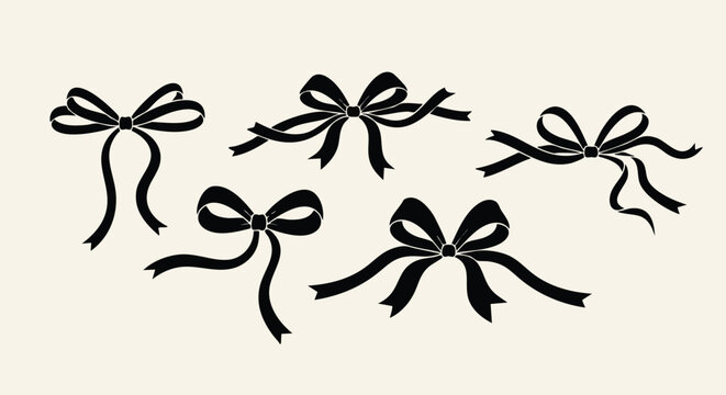 Elegant black ribbon bows in various dynamic arrangements perfect for festive decoration, gift wrapping, and premium branding accents