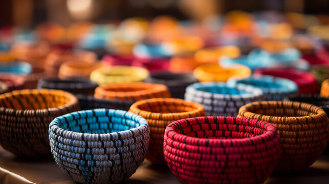 Peruvian jungle artisan working on his products to sell them in his market stall.