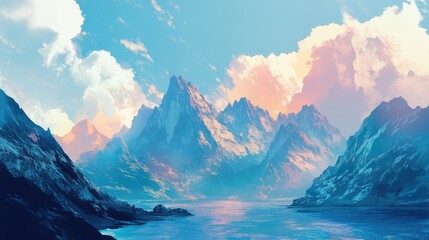 2D illustration of majestic mountains Digital artwork created through handmade techniques