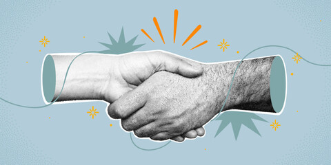 Business people shake hands after negotiation, came to agreement and completed the deal with a handshake. Flat design vector concept for web site and application design and presentation.