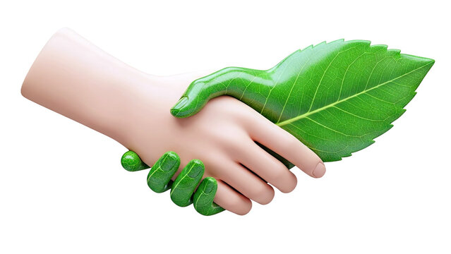 Eco-friendly handshake with leaf hands