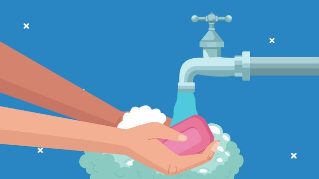 closeup of a boy scrubbing soapy hand against washbasin. Concept of a hand hygiene and global handwashing day