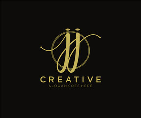 initial JJ Feminine logo beauty monogram and elegant logo design, handwriting logo of initial signature, wedding, fashion, floral and botanical with creative template.