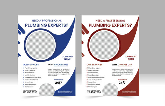 Professional plumbing services flyer or poster template design, Plumbing house service poster template design,  A4 size flyer design corporate clean and modern plumbing template design