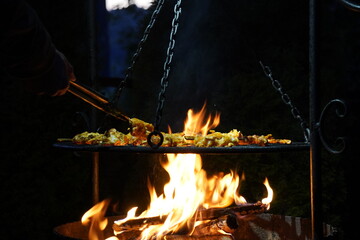 smoked pork meat food on hook in old smokehouse interior on blurry background closeup view of homemade ham traditional gourmet organic beef meal in smoke retro restaurant indoor scene