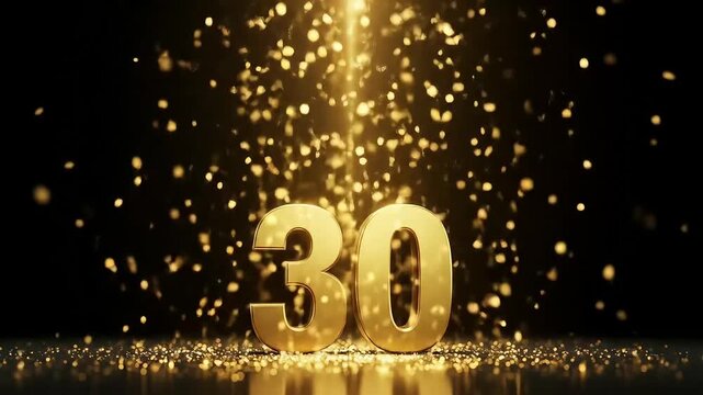 Luxurious Golden 30th Celebration with Sparkling Confetti Rain.