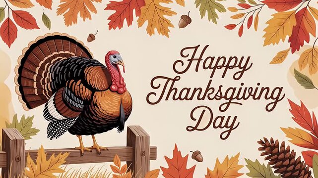 happy thanksgiving day turkey autumn leaves festive holiday