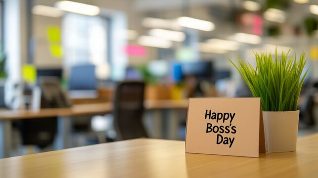 Happy Bosss Day card with small gift box and pastel balloons creates cheerful office atmosphere. This setup is perfect for celebrating and appreciating leadership