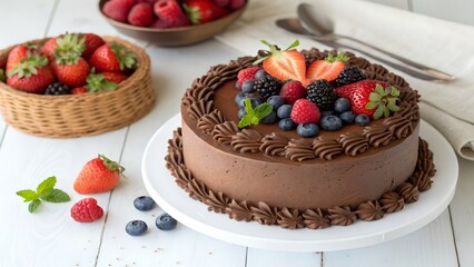 Heart shaped cake with strawberries