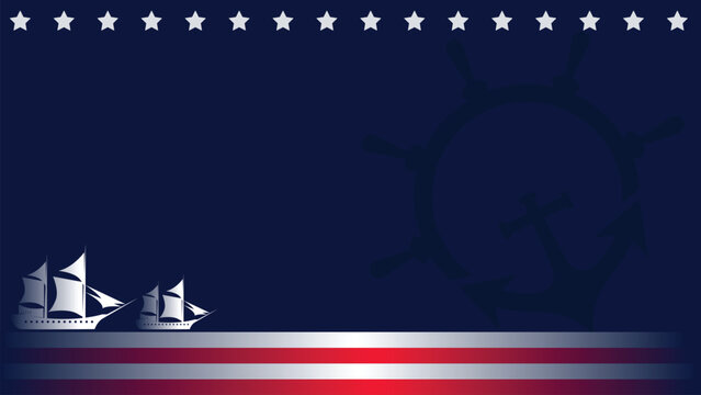 columbus day background with silhouette of ship, steer wheel, anchor and copy space area suitable to place on content with that theme